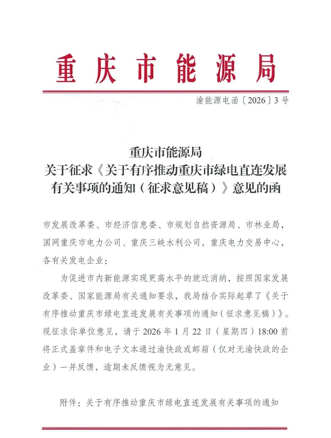 重庆绿电直连方案征求意见