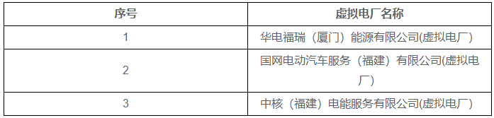 上述虚拟电厂具体公示信息,详见福建电力交易平台(https://pmos.fj.sgcc.com.cn)“入/退市公示”栏目。