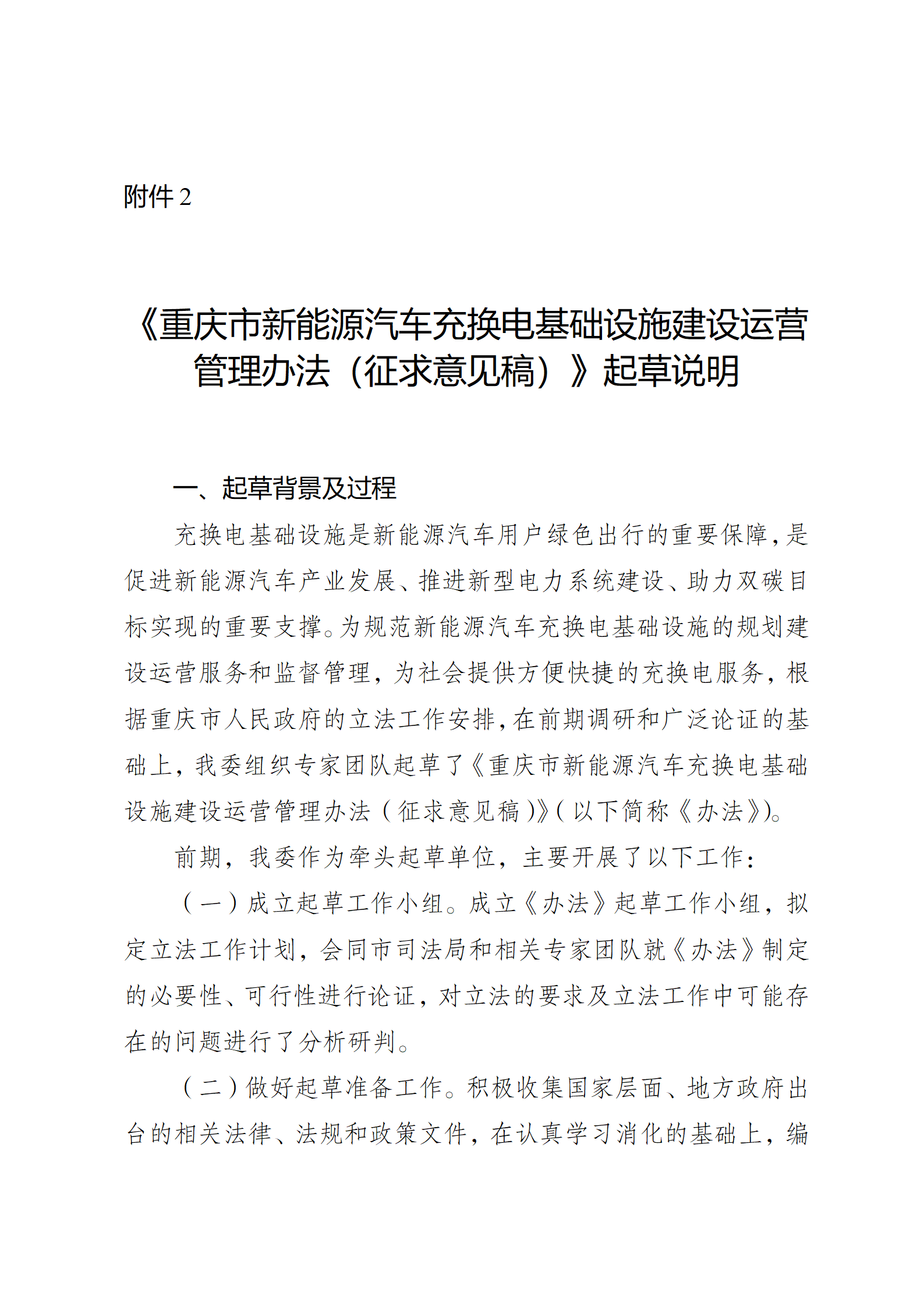 2.《重庆市新能源汽车充换电基础设施建设运营管理办法(征求意见稿)》起草说明