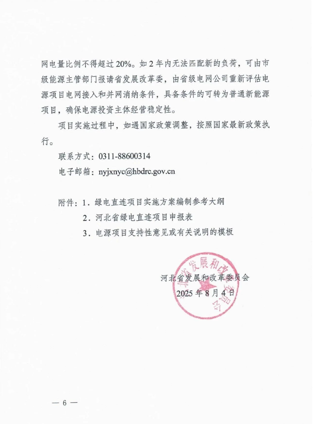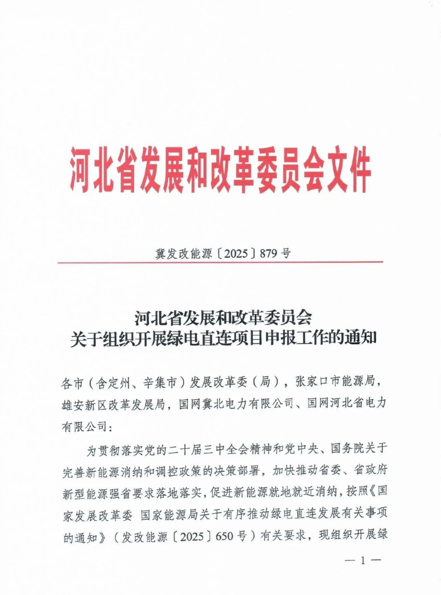 8月4日,河北省发展和改革委员会发布《关于组织开展绿电直连项目申报工作的通知》,要求企业在9月30日前提交申报。