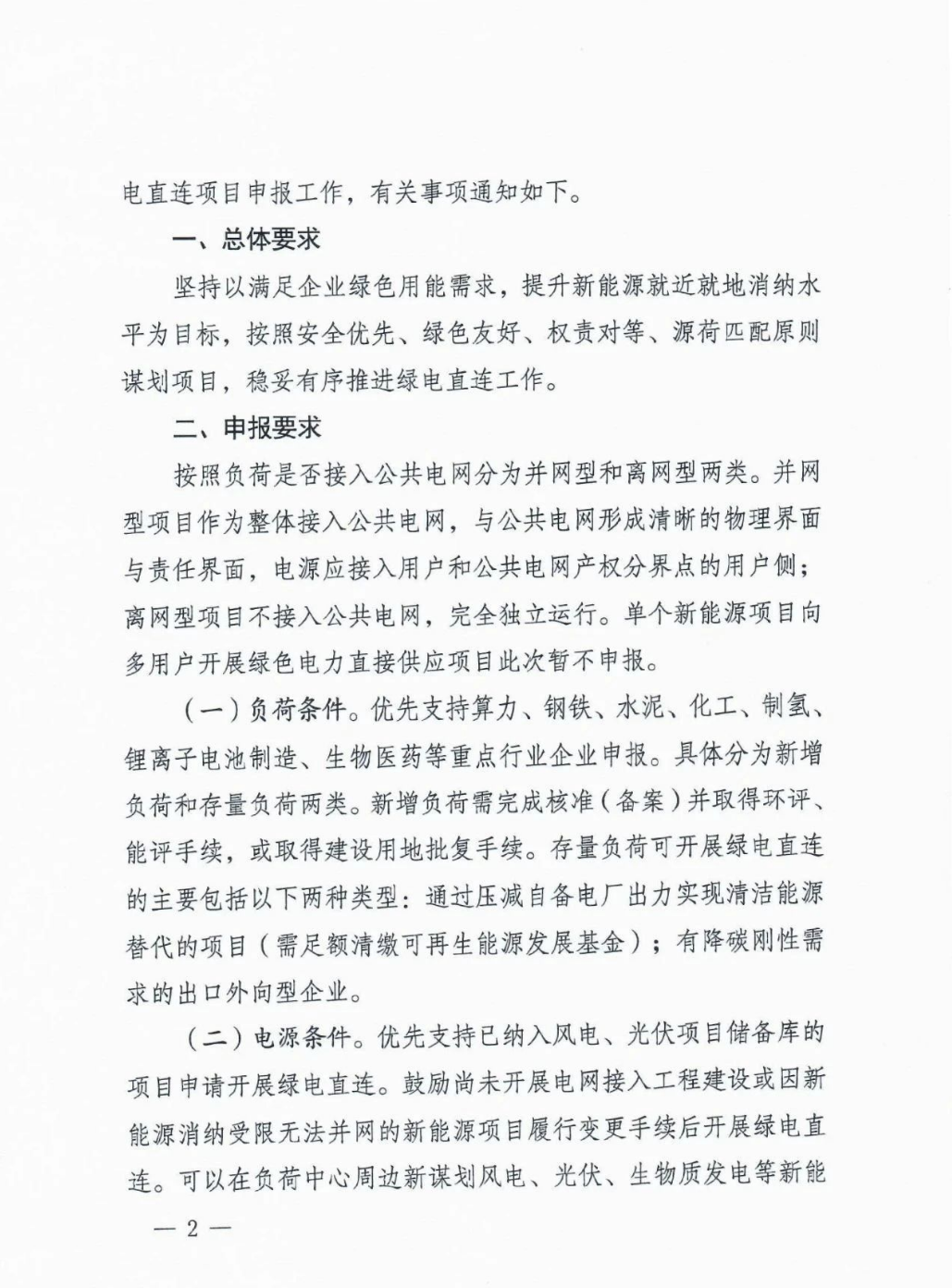 文件明确,坚持以满足企业绿色用能需求,提升新能源就近就地消纳水平为目标,按照安全优先、绿色友好、权责对等、源荷匹配原则谋划项目,稳妥有序推进绿电直连工作。