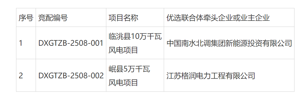 临洮县10万千瓦、岷县5万千瓦风电项目竞争性配置结果公示