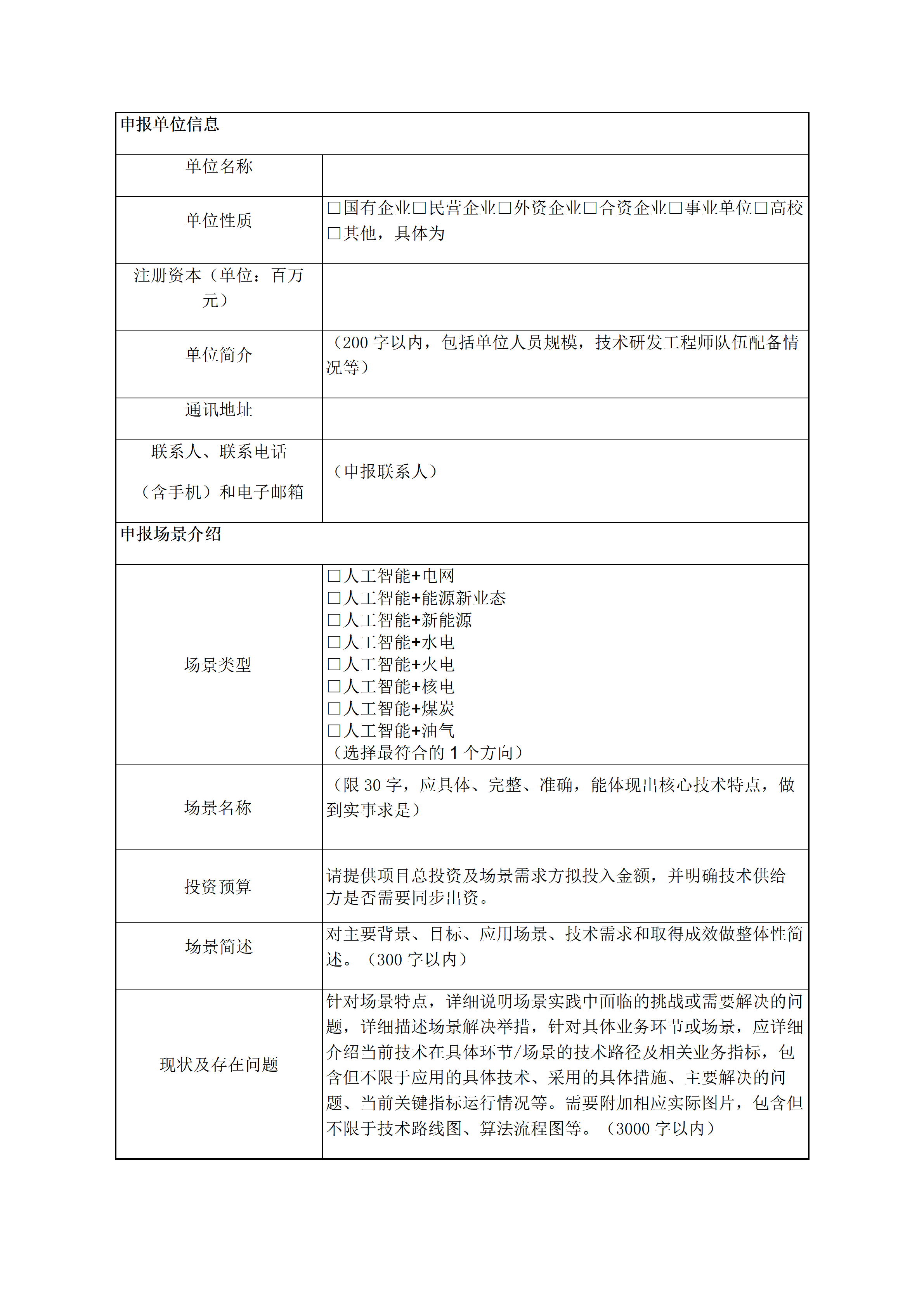 1.申报单位应是能源企业,在保证安全稳定运行及数据安全的前提下,承诺向组队成功的人工智能技术供给方开放场景及相关数据等必要资源。