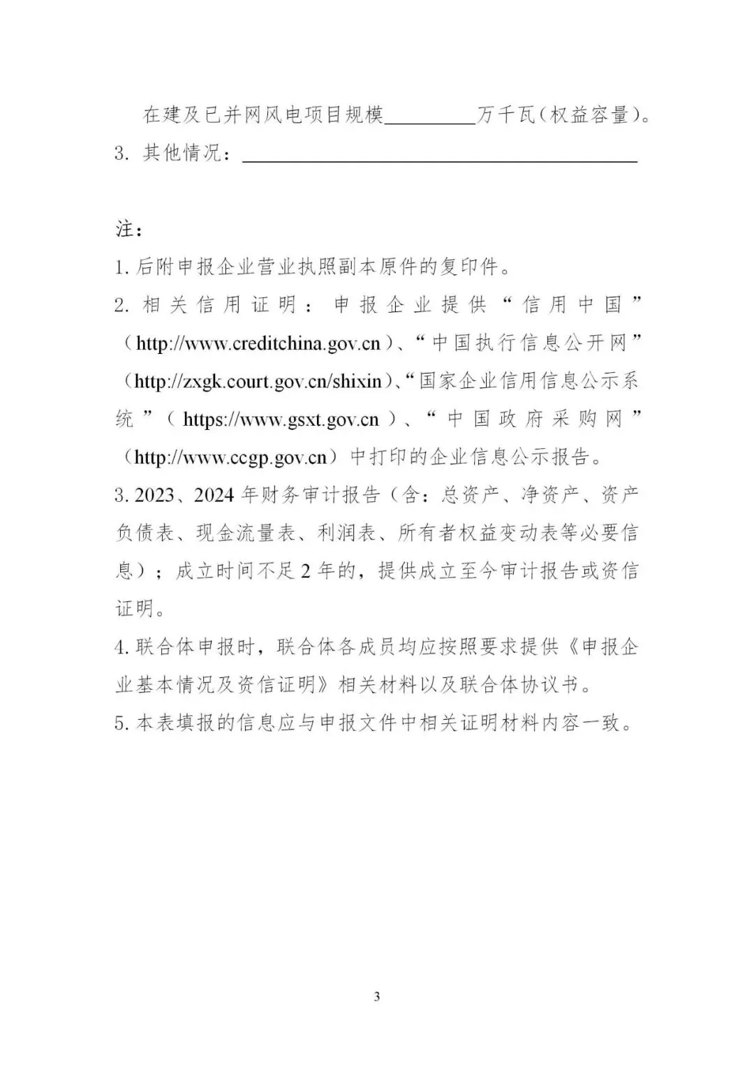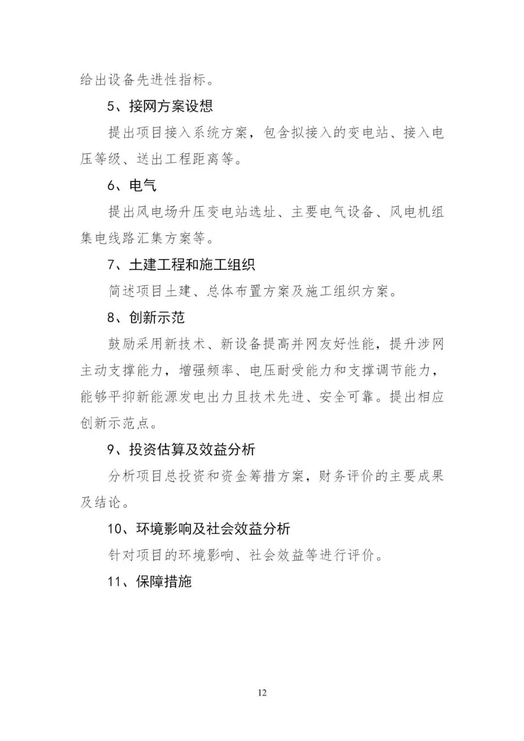 3.申报企业应按要求编制项目建设方案,明确站点风能资源条件、电站建设方案、经济性测算分析、技术先进性等内容;并附项目接网方案,明确拟接入的变电站、接入电压等级、送出工程距离等。鼓励申报项目建设系统友好型电站,创新采用提高并网友好性能,提升涉网主动支撑能力,增强频率、电压耐受能力和支撑调节能力,能够平抑新能源发电出力且技术先进、安全可靠的先进设备。