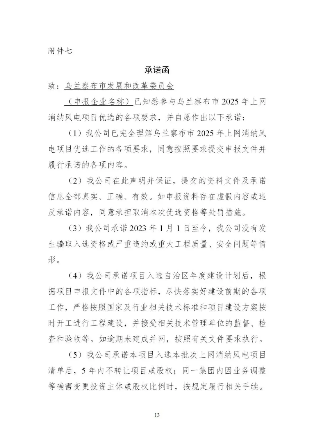 关于开展乌兰察布市2025年上网消纳风电项目优选工作的公告