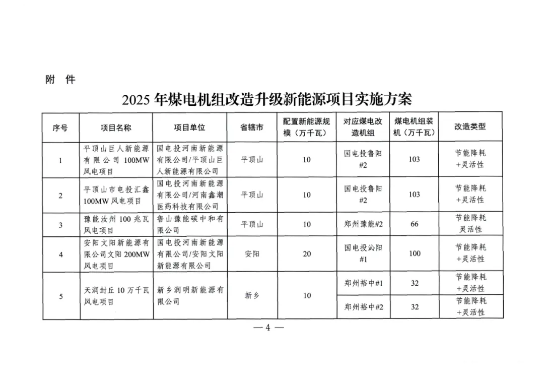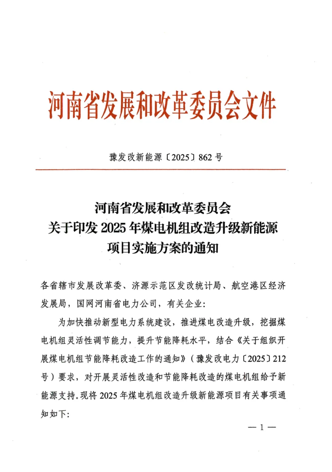 近日,河南省发改委发布《关于印发2025年煤电机组改造升级新能源项目实施方案的通知》。