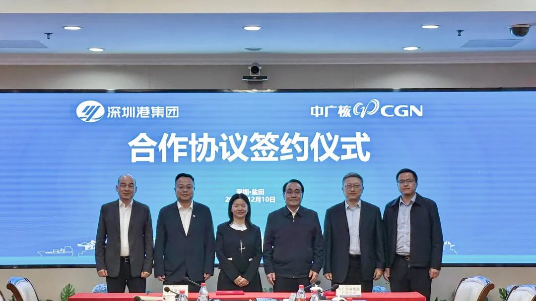 12月10日,中国广核新能源控股有限公司(以下简称中广核新能源)与深圳港集团有限公司(以下简称深圳港集团)在深圳举行合作签约仪式。中广核新能源党委书记、董事长张志武,中广核新能源党委委员、副总经理戴洪刚,深圳港集团党委书记、董事长胡朝阳,深圳港集团总裁沈华新出席仪式并见证签约。中广核新能源广东公司党委书记、总经理潘天国与深圳港集团副总裁彭洪波代表双方签署合作协议。此次签约是继今年9月双方建立战略合作关系后,推动合作项目实质性落地、打造央地合作示范标杆的关键一步,标志着双方在海洋绿色能源领域的合作迈入深度协同新阶段。