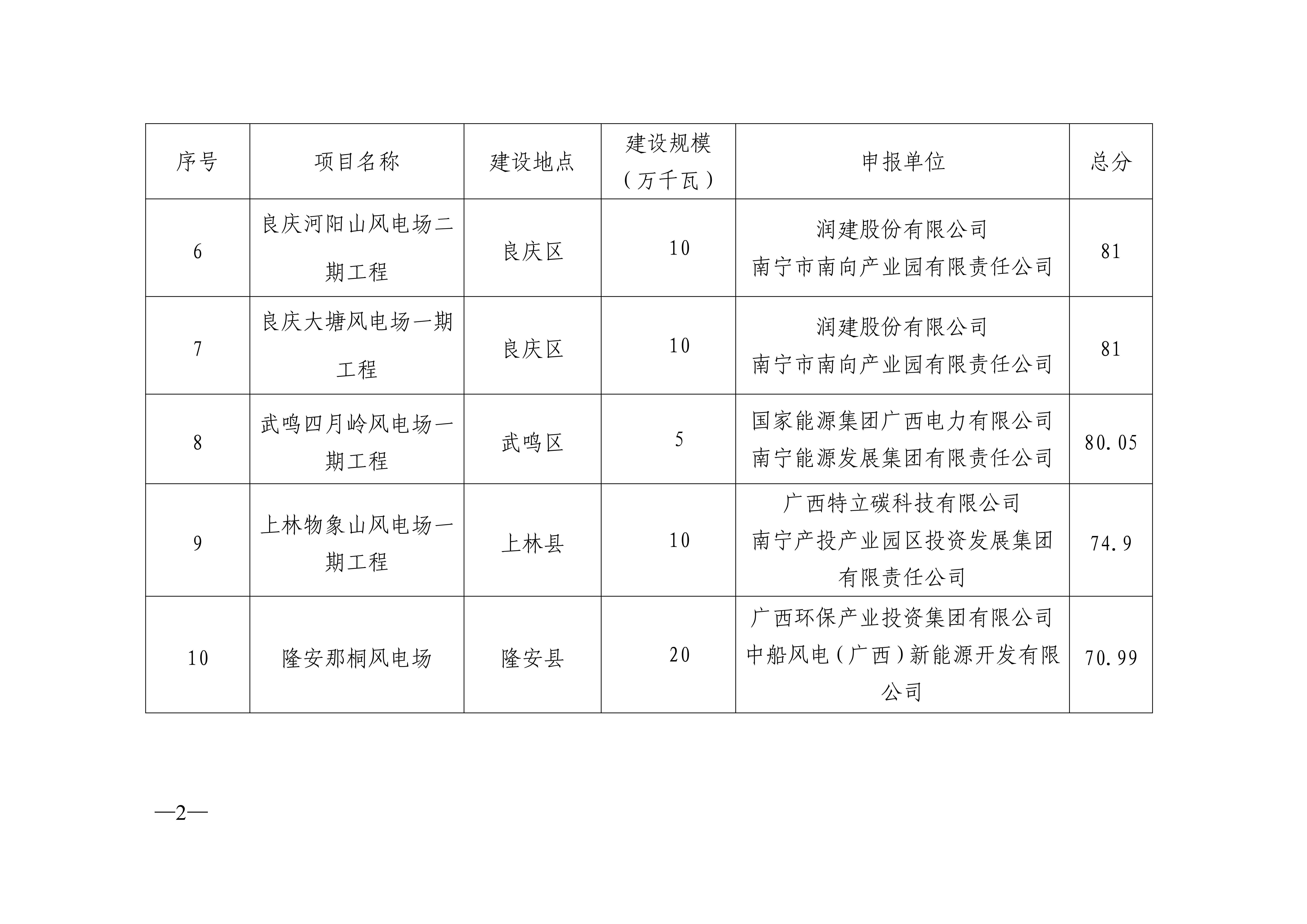 附件:2025年南宁市陆上风电项目竞争性配置评分结果表