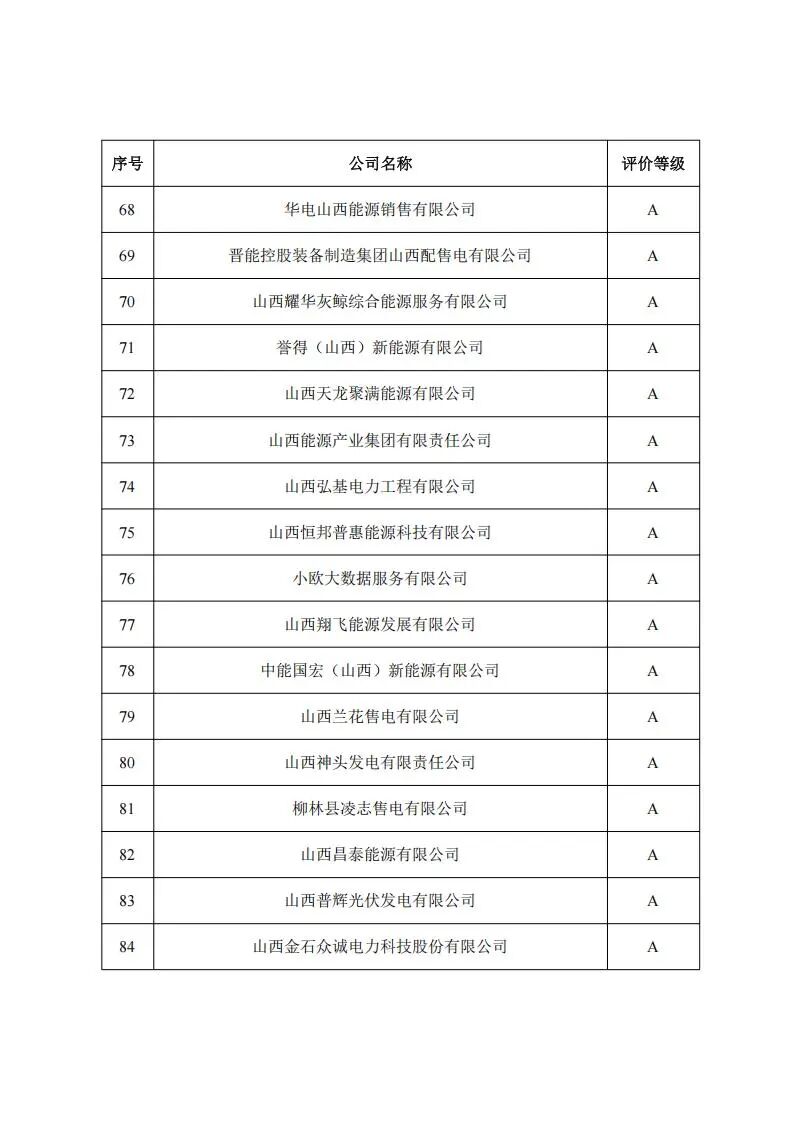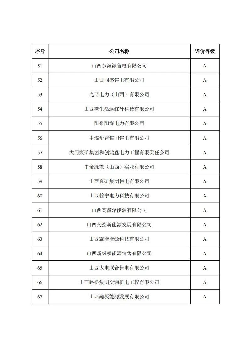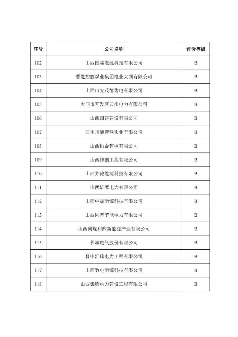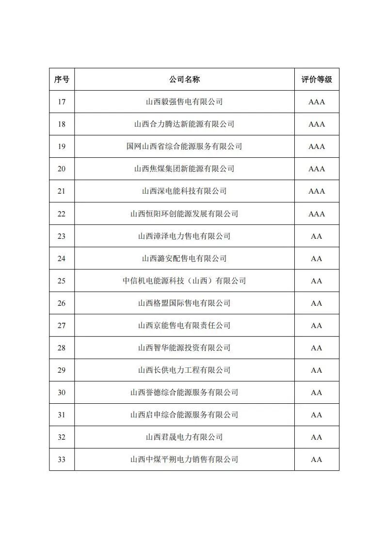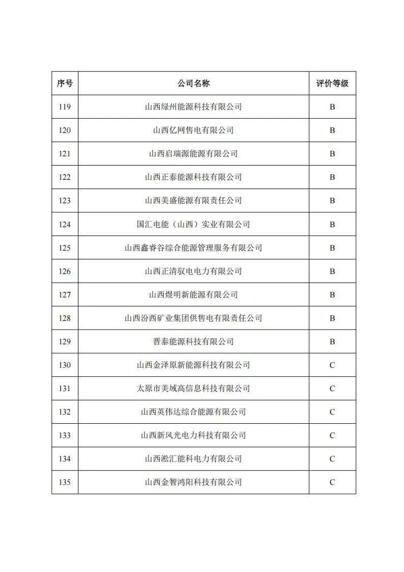 山西省能源局关于2025年度售电公司综合服务能力评价结果的通报