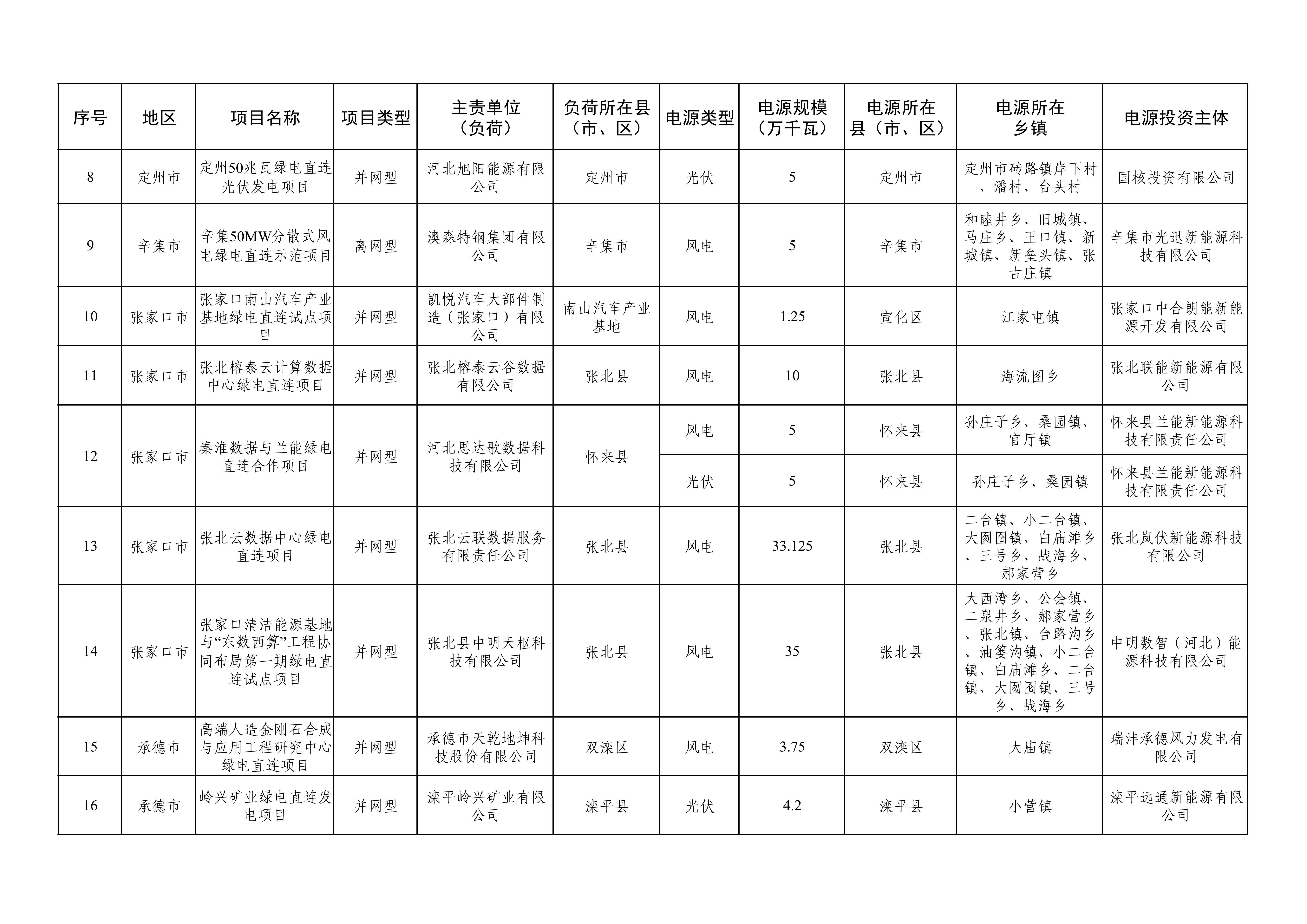河北省2025年绿电直连拟安排第一批项目情况公示