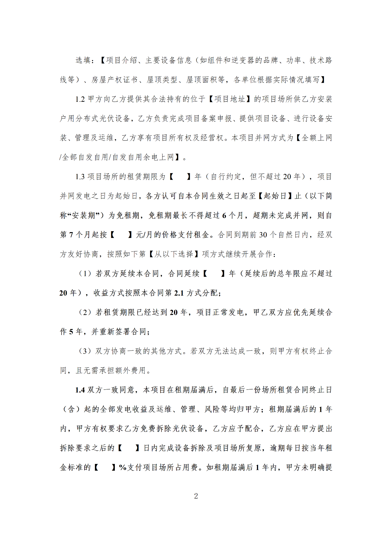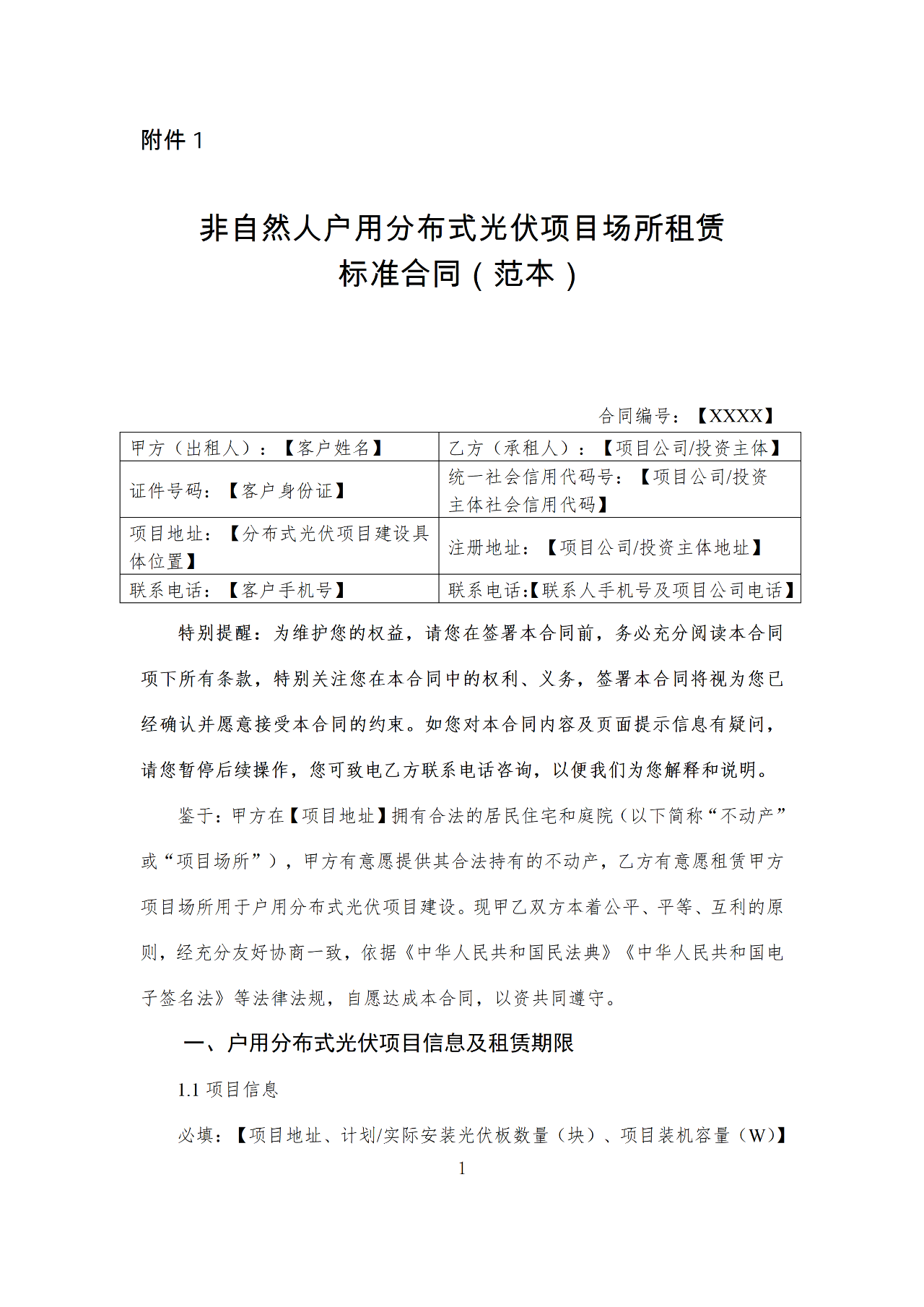 1. 非自然人户用分布式光伏项目场所租赁标准合同(范本)