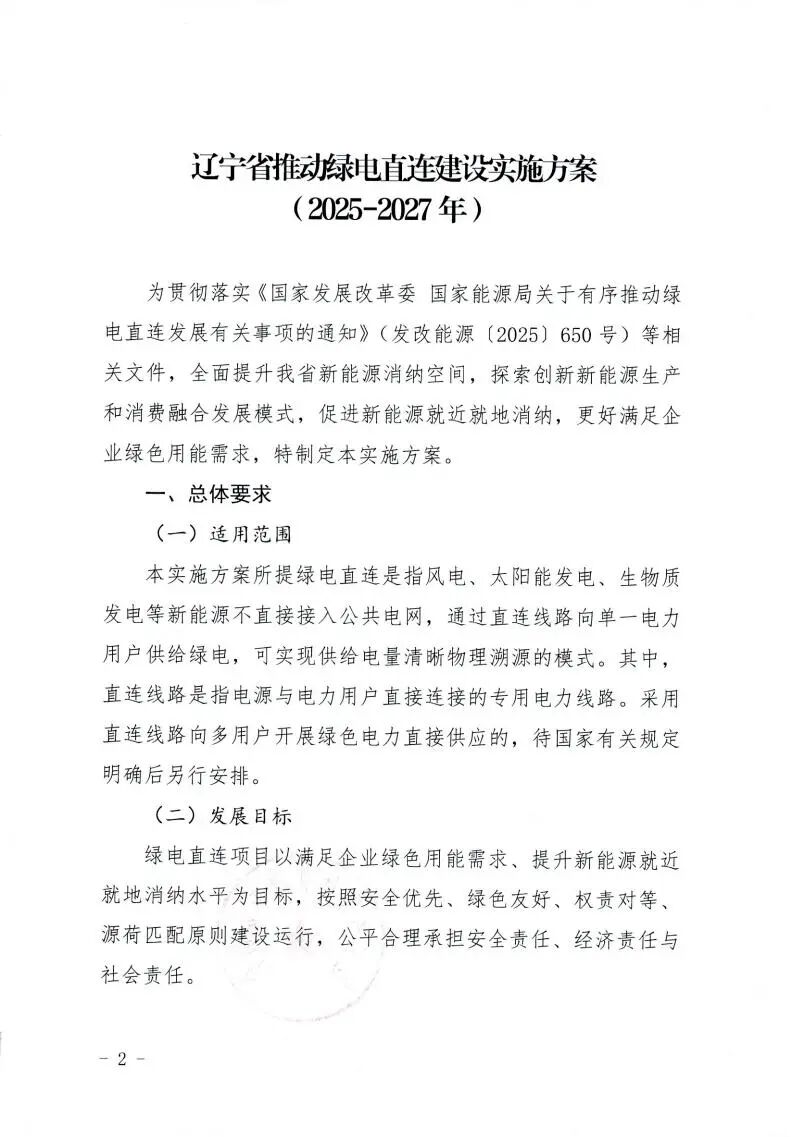 12月24日,辽宁省发展和改革委员会发布《辽宁省推动绿电直连建设实施方案(2025-2027年)》。