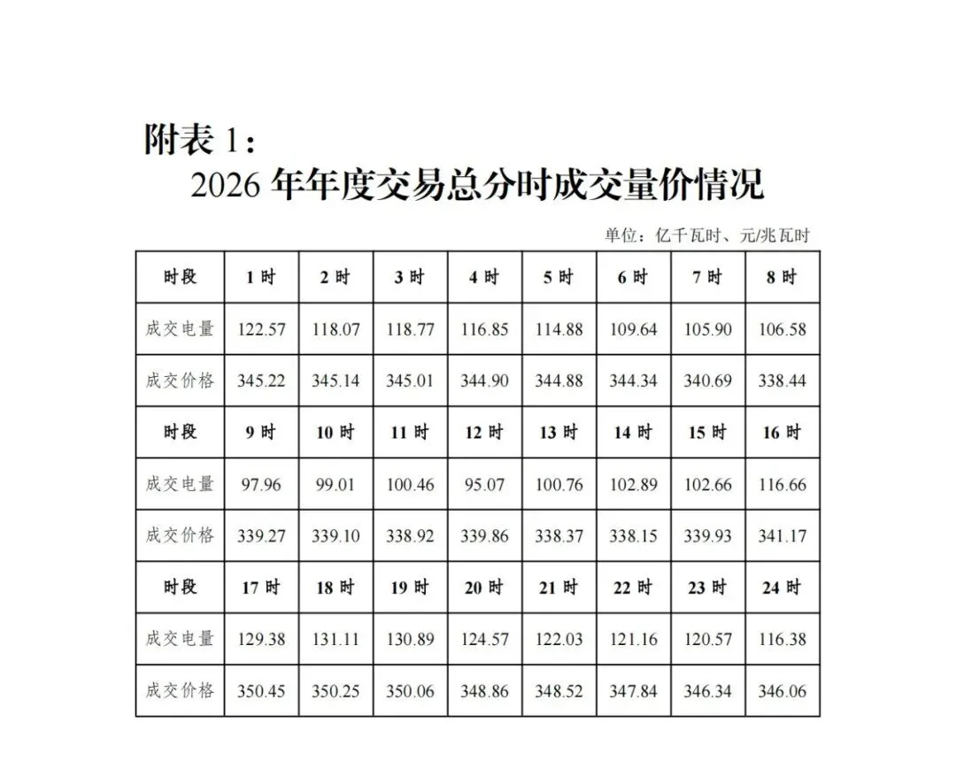 12月30日,江苏电力交易中心正式公示2026年省内电力市场年度交易结果。总成交电量2724.81亿千瓦时,加权均价344.19元/兆瓦时。其中: