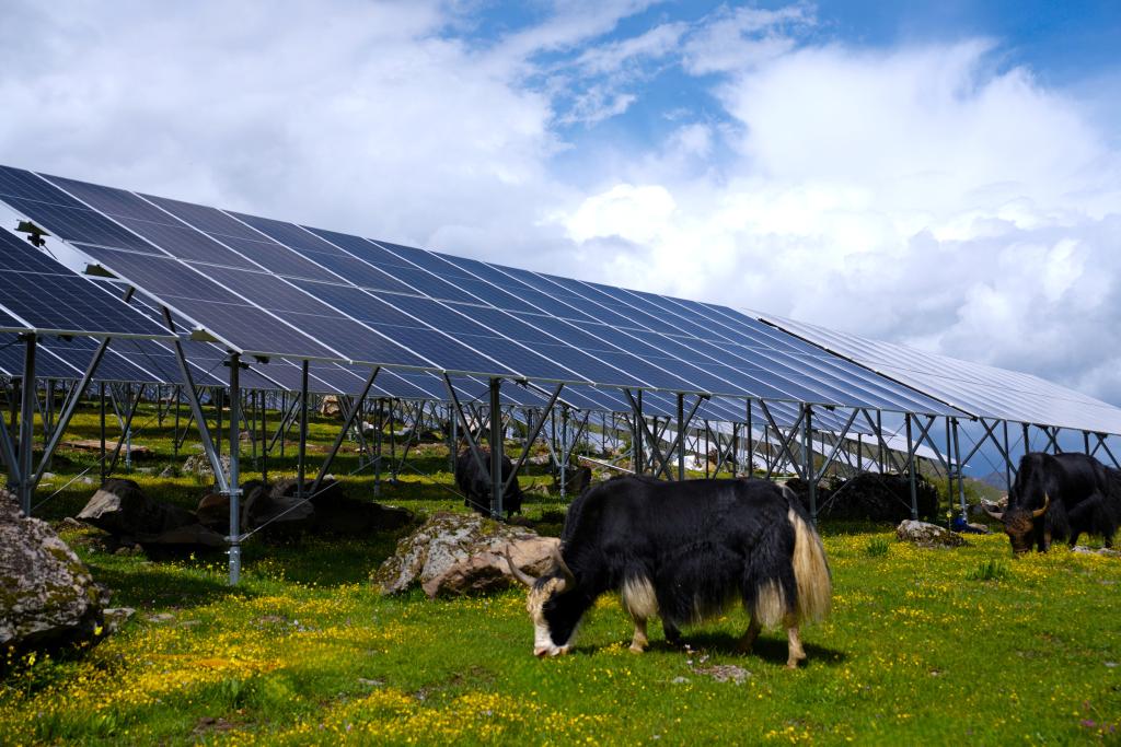 茶布朗光伏电站“牧光互补”。(国投雅砻江公司供图)