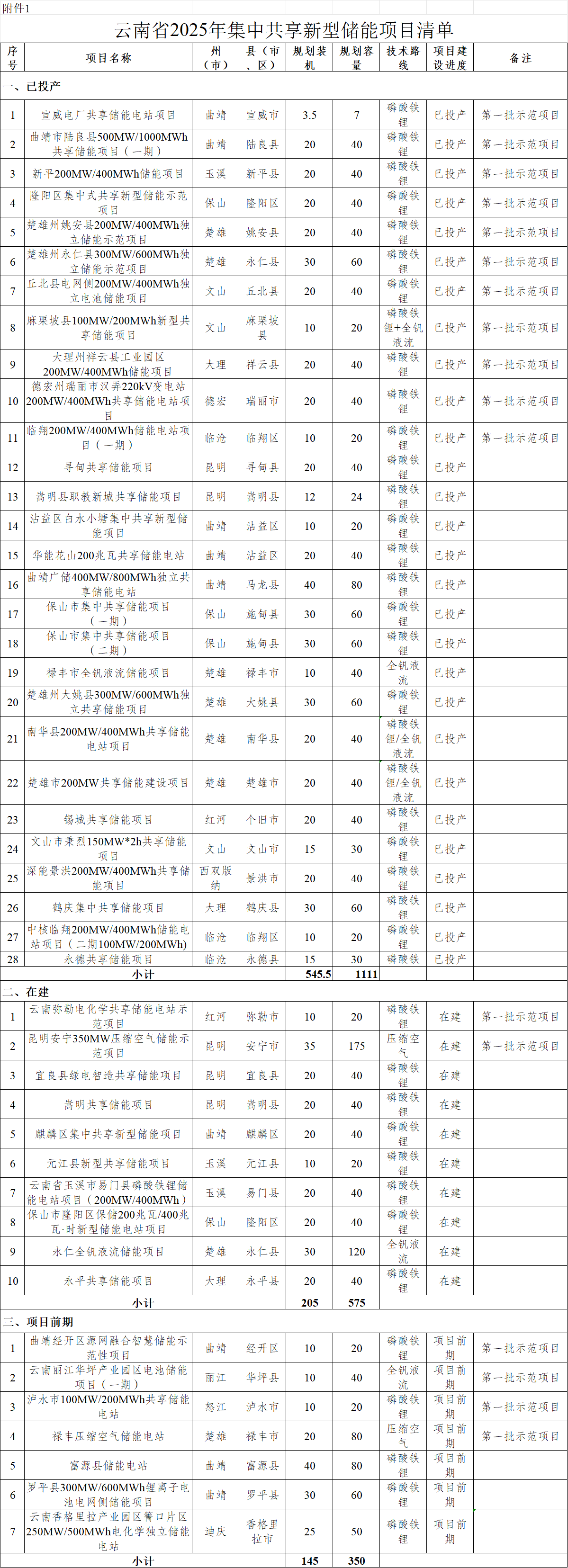 附件1:云南省2025年集中共享新型储能项目清单.xlsx