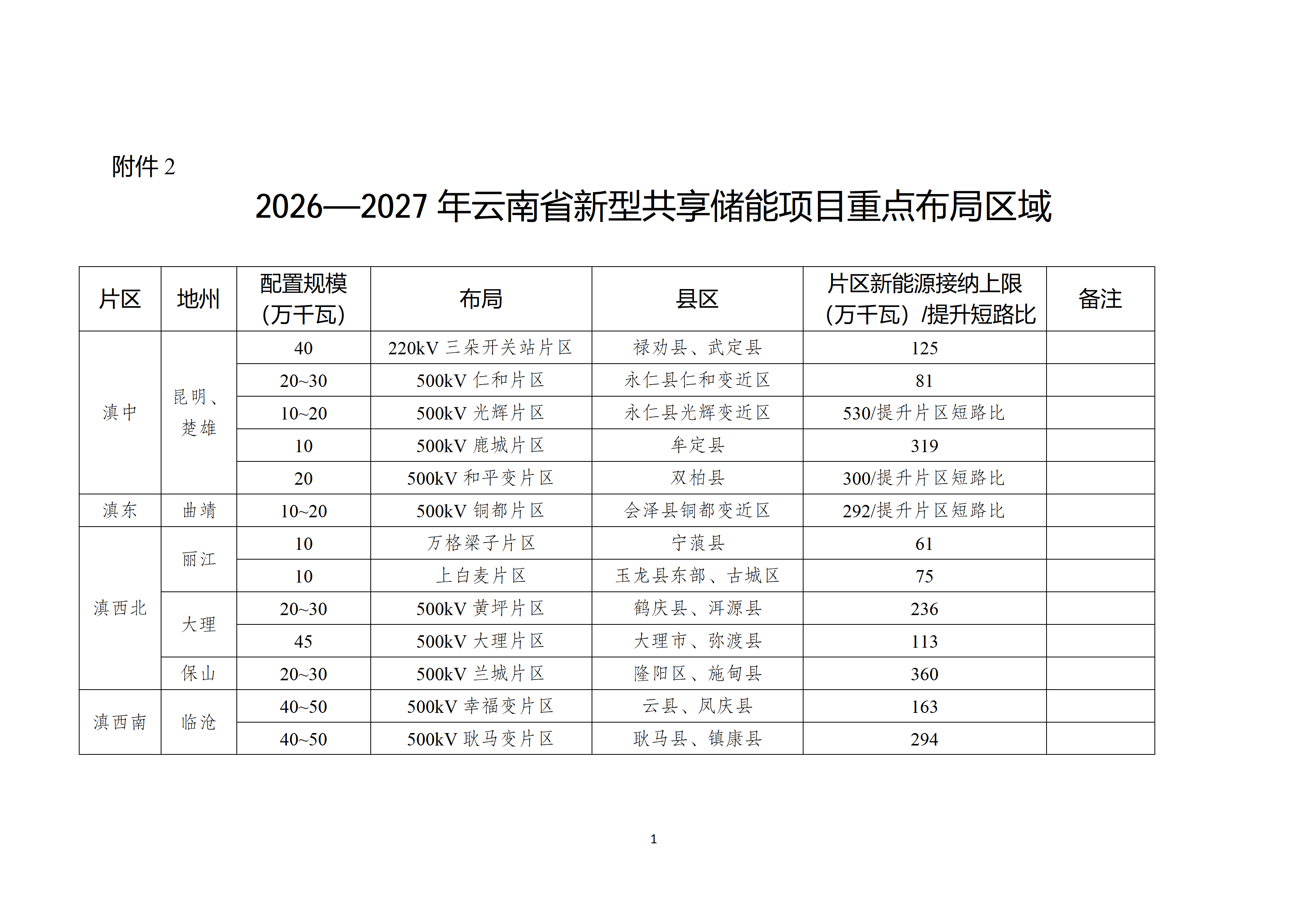 附件2:2026—2027年云南省新型共享储能项目重点布局区域.docx