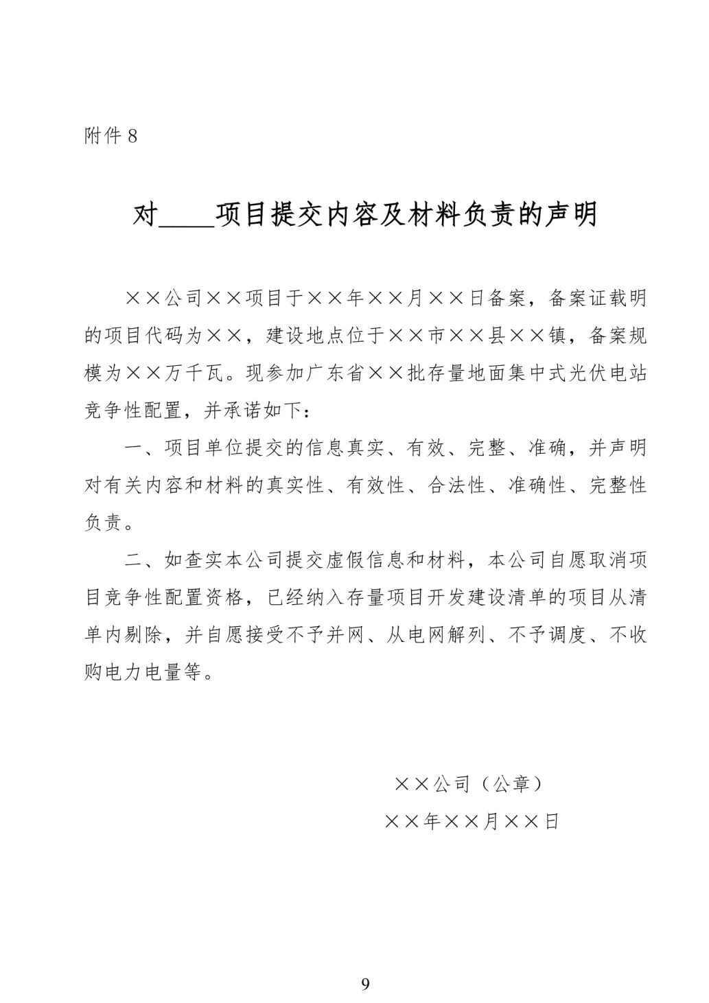 广东省存量地面集中式光伏电站竞争性配置工作方案