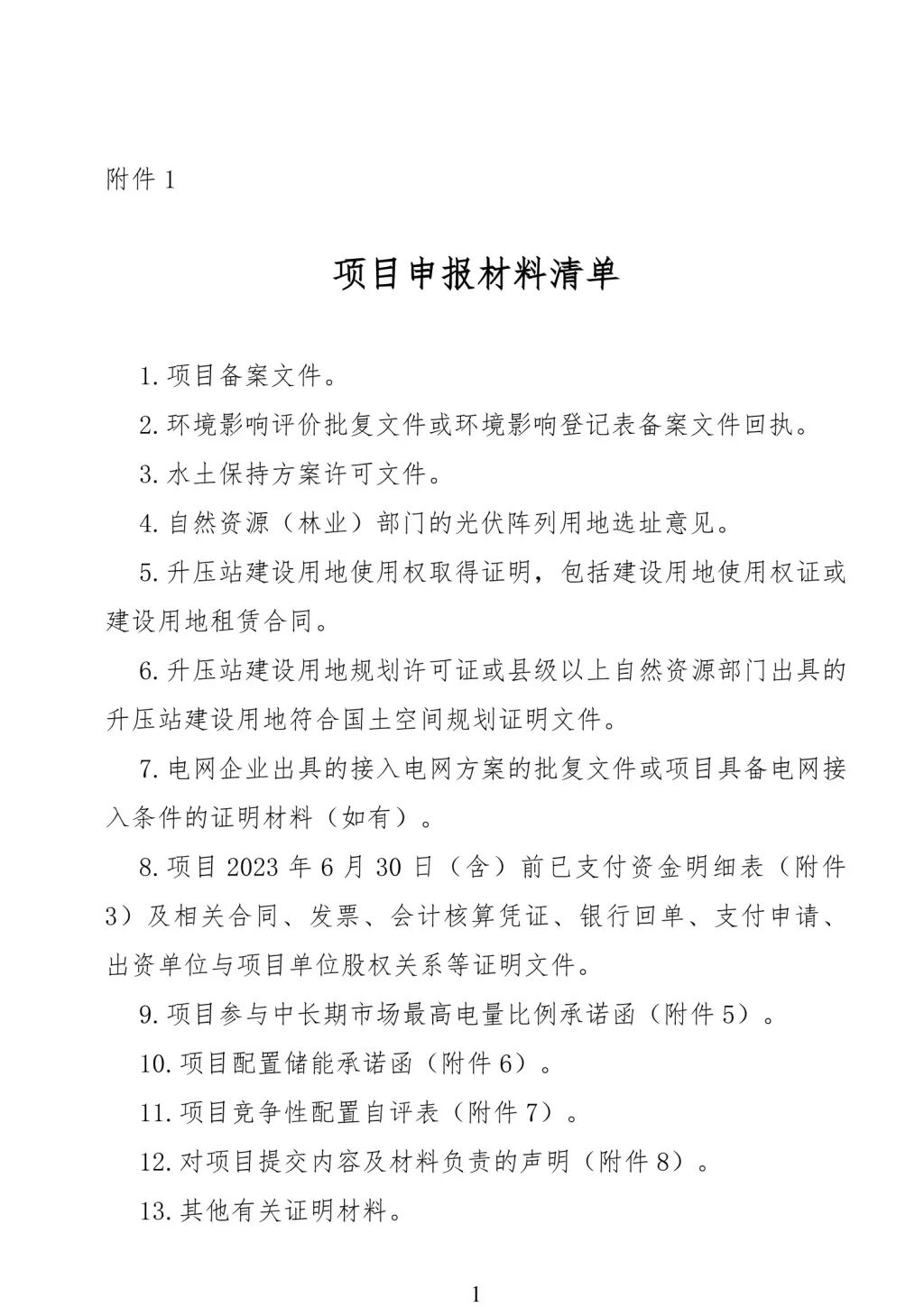 (一)组织项目申报和初审。各地市能源主管部门组织存量项目申报(材料清单参考附件1,申报材料逐页加盖项目单位公章),对项目2023年6月30日(含)前已支付资金比例(附件2,计算规则见附件3)以及申报材料等进行初步审核,并会同生态环境、水利、自然资源(林业)等有关部门对项目手续齐备性和合规性进行审查,最后汇总形成符合竞争性配置条件的项目清单(附件4),连同项目申报材料一并报省发展改革委(省能源局)。对项目参与中长期市场最高电量比例承诺函(附件5)、配置储能承诺函(附件6)、竞争性配置自评表(附件7)等材料,各地市能源主管部门无需审核,由项目单位密封后经各地市能源主管部门统一报送省发展改革委(省能源局)。