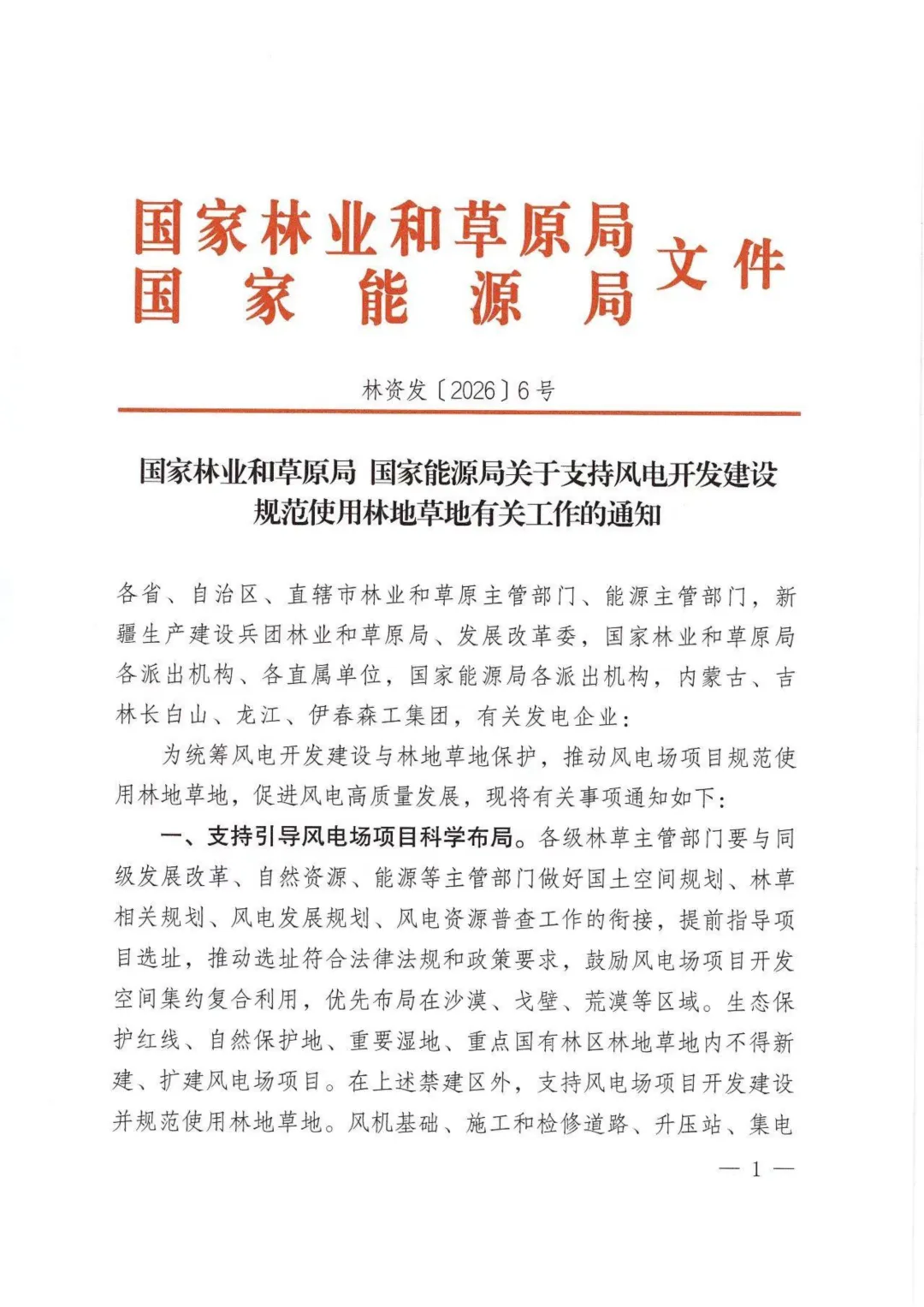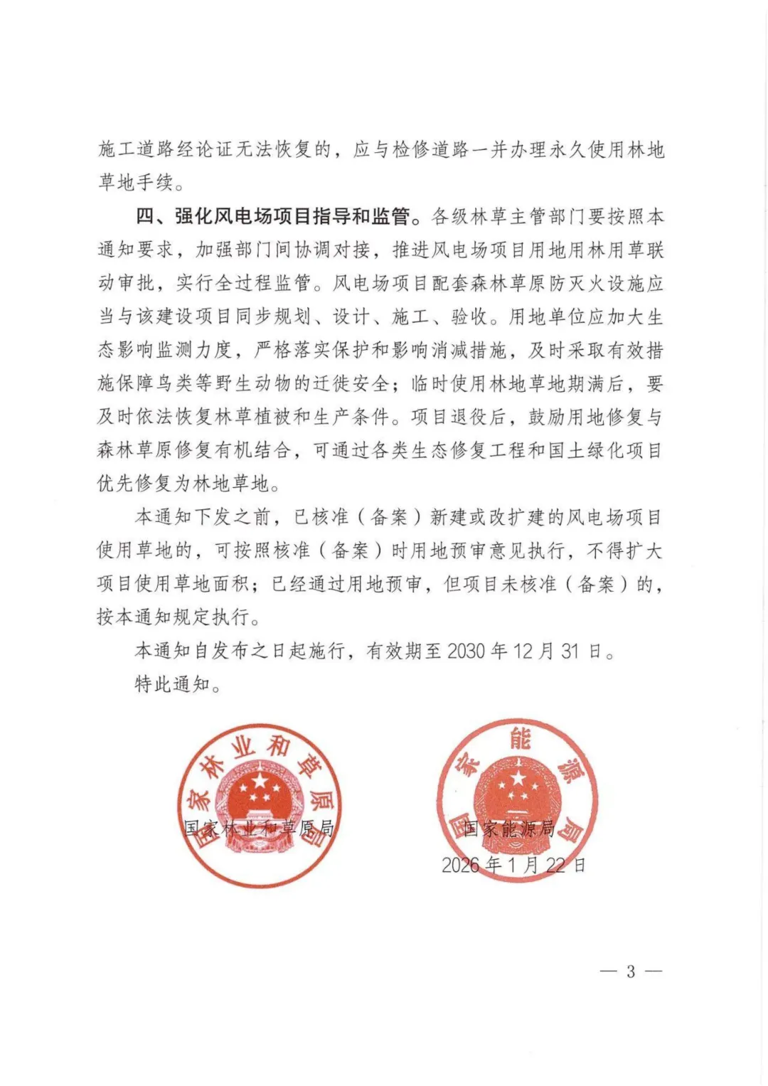 1月22日,国家林业和草原局、国家能源局印发《关于支持风电开发建设规范使用林地草地有关工作的通知》。