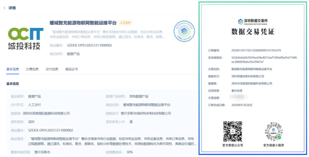 1月27日,内蒙古鄂尔多斯市首笔新能源数据资产交易在深圳数据交易所成功落地。鄂尔多斯市城投特来电公司顺利将53处充电场站8类核心运营数据,从“资源”转化为可交易、可增值的“资产”,此举不仅实现了当地新能源领域数据资产市场化流通“零突破”,更以国企创新实践为引领,为区域数字经济与绿色能源产业深度融合树立标杆。