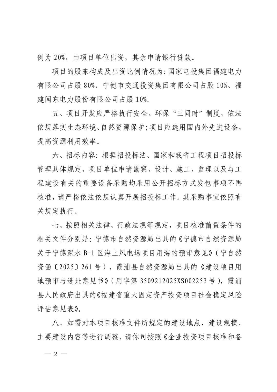 项目总投资40.53亿元。项目的股东构成及出资比例情况为:国家电投集团福建电力有限公司占股80%、宁德市交通投资集团有限公司占股10%、福建闽东电力股份有限公司占股10%。