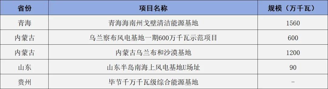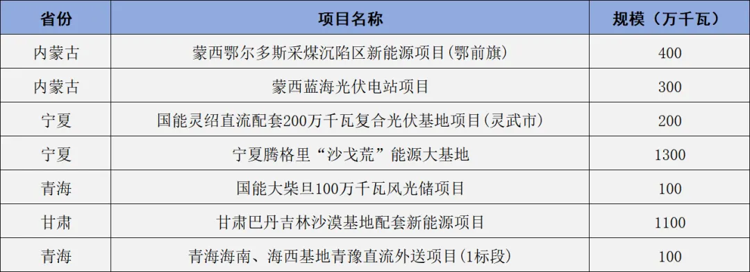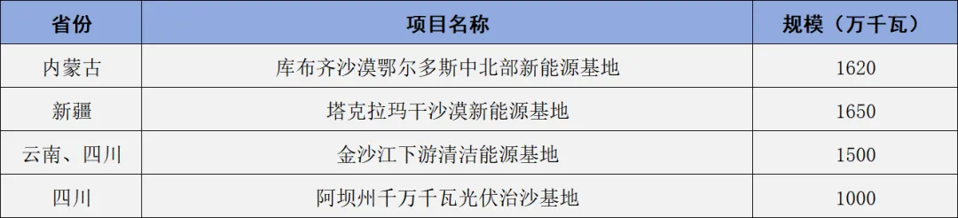 据初步统计,目前六大发电集团牵头的新能源基地,总规模约400GW,整理如下: