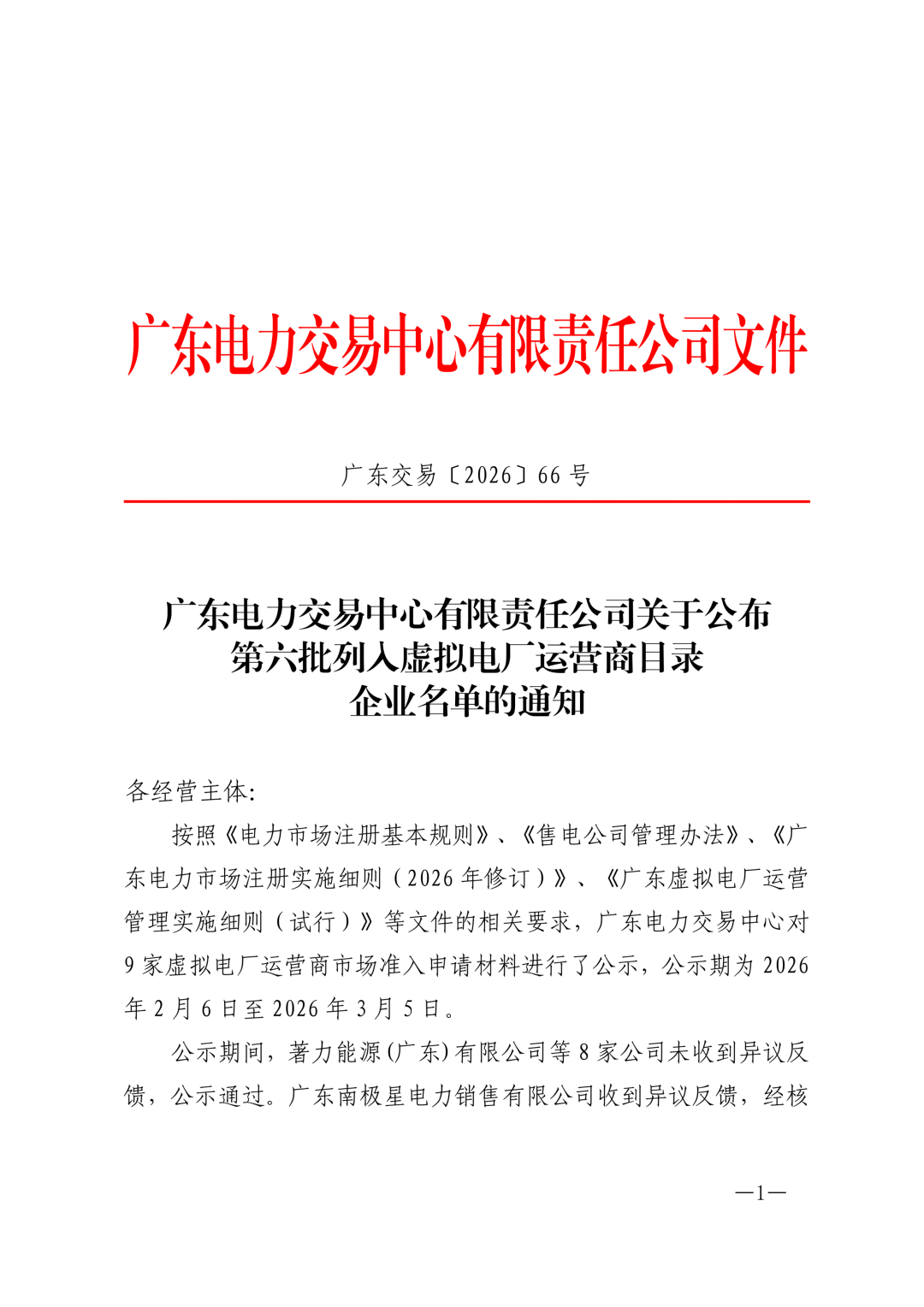 3月11日,广东电力交易中心发布关于公布第六批列入虚拟电厂运营商目录企业名单的通知。