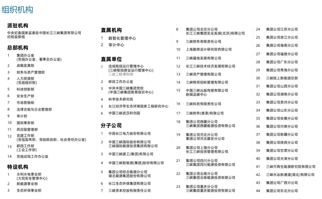 此次调整首先厘清了机构层级,原本隶属于总部机构的纪检监察组,正式独立为派驻机构板块,明确为中央纪委国家监委驻中国长江三峡集团有限公司纪检监察组,让监督体系的独立性和专业性进一步提升。