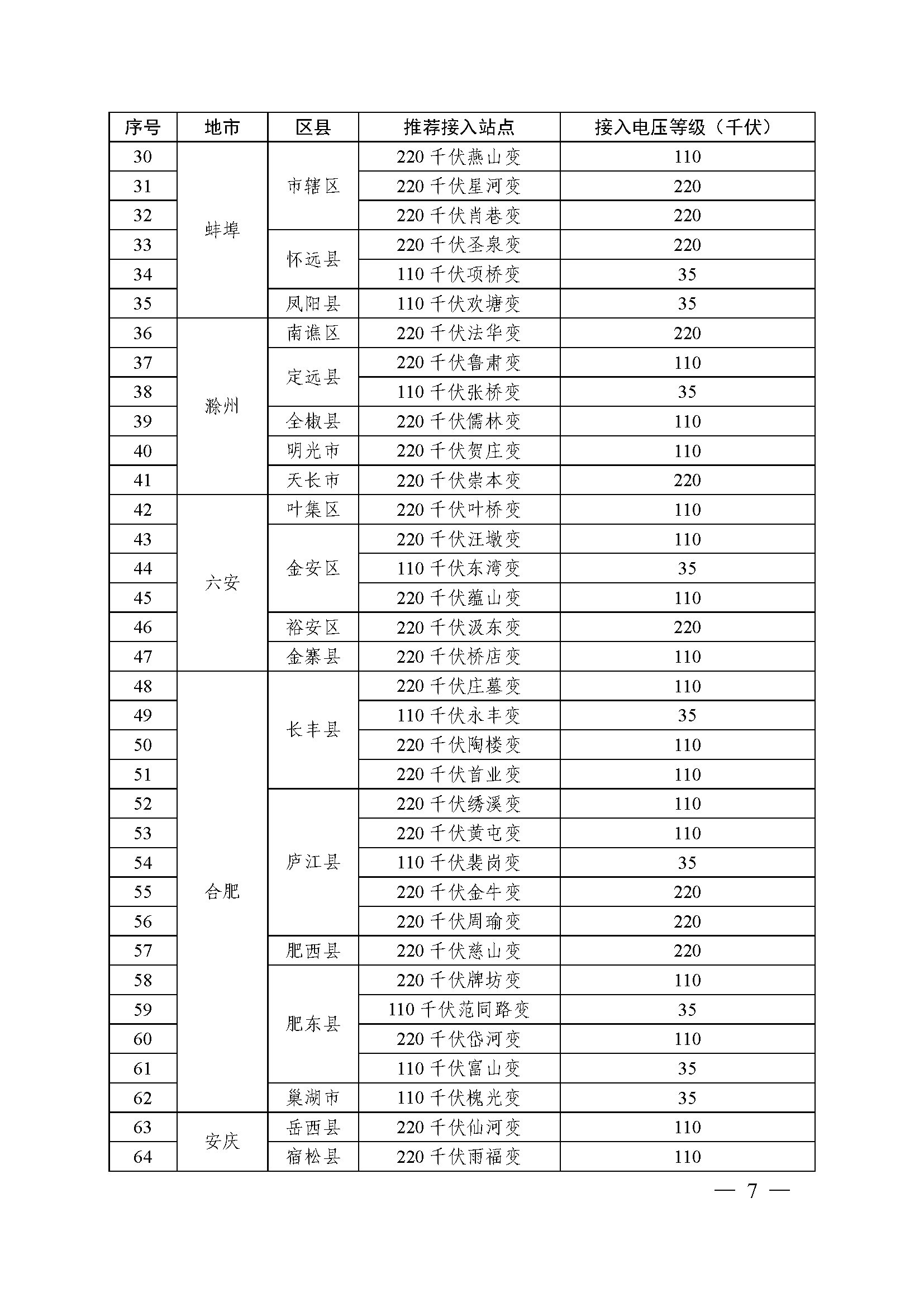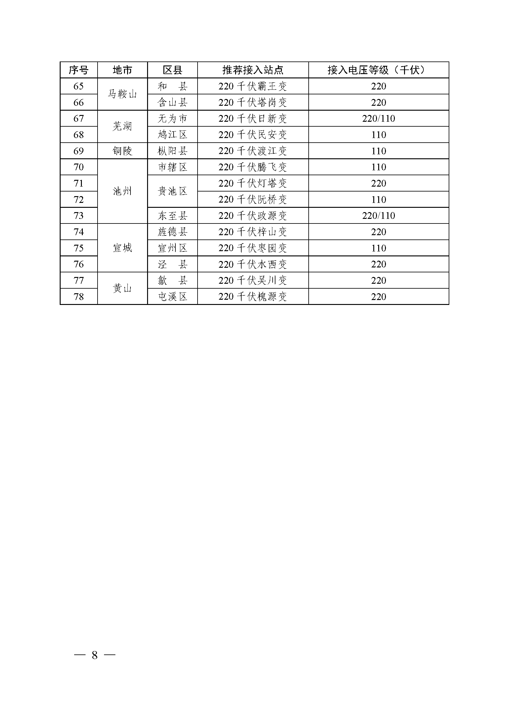 78个推荐站点分布于16个地市,其中合肥市推荐站点数量最多,为15个;亳州推荐站点数量10个,位列第二。从接入电压等级看,31个推荐接入点接入电压等级为110kV,27个为220kV,另有35个接入35kV,2个接入110/220kV。