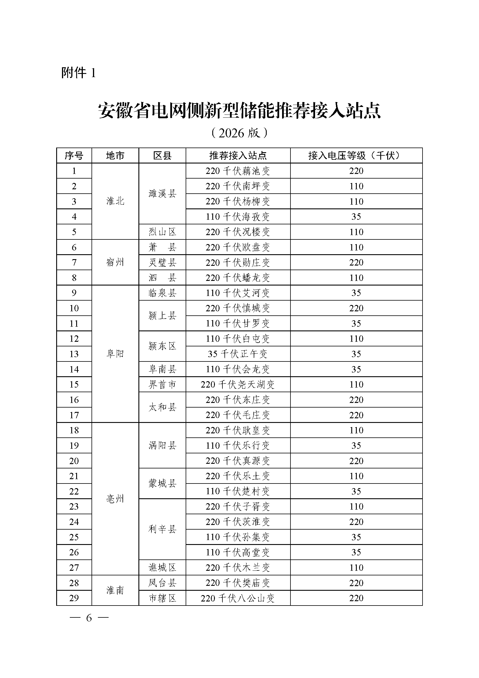 近日,安徽省能源局发布《关于征求进一步做好新型储能项目库管理工作(征求意见稿)意见的通知》,对储能项目入库管理做出详细规定。包括储能项目实施分级分类管理、强化电网侧项目实施清单管理以及相关工作的具体要求等。通知同时给出了《安徽省电网侧新型储能推荐接入站点(2026 版)》,共计78个站点被推荐。