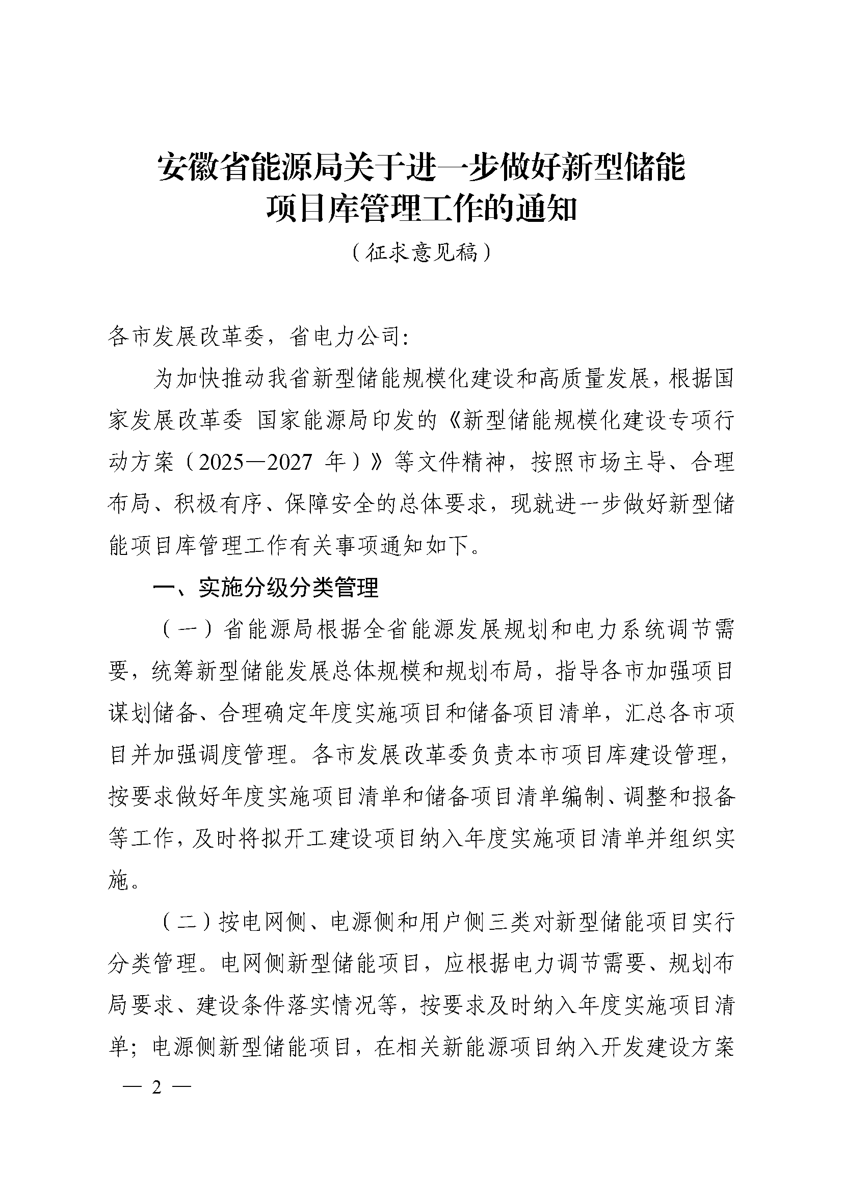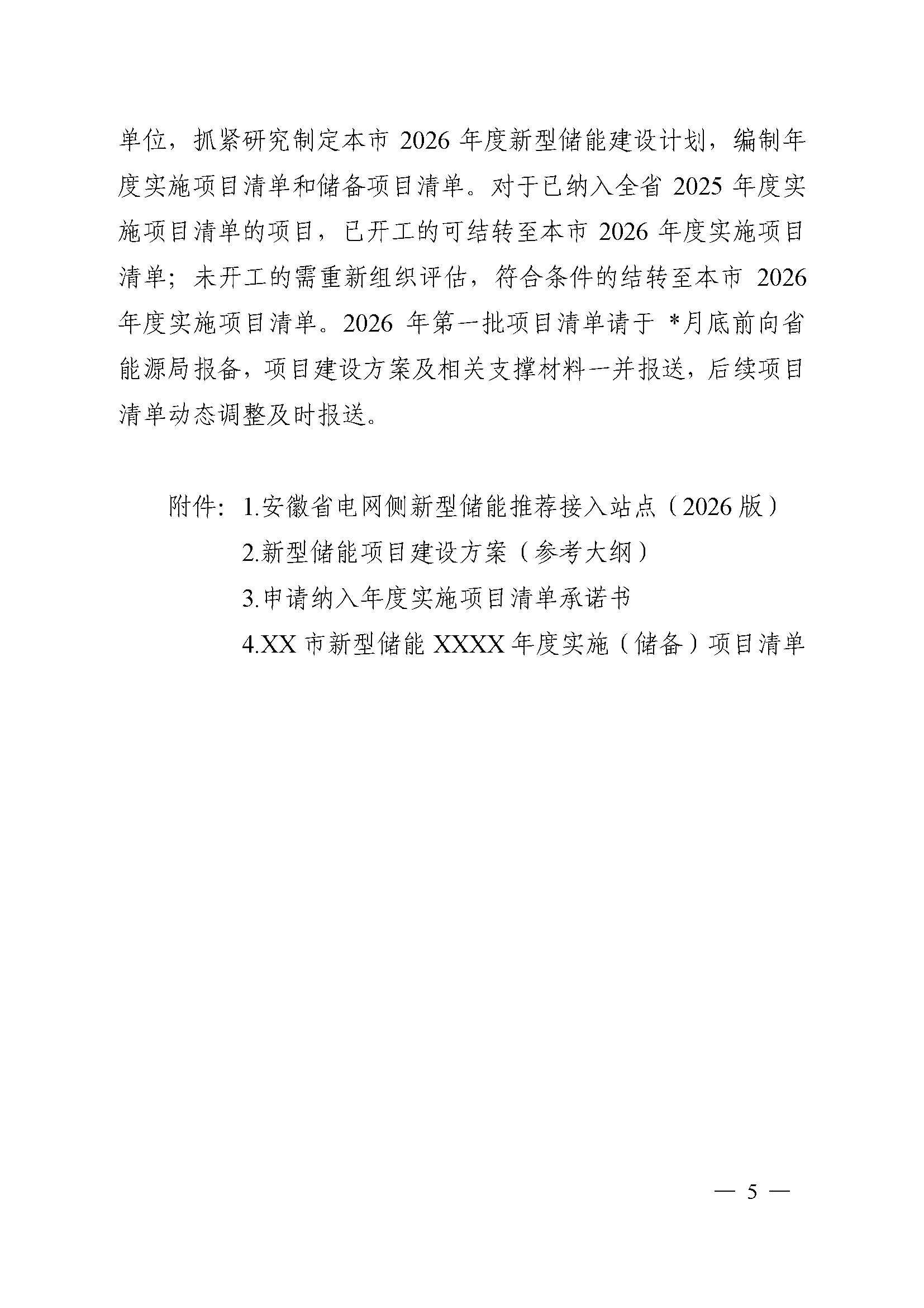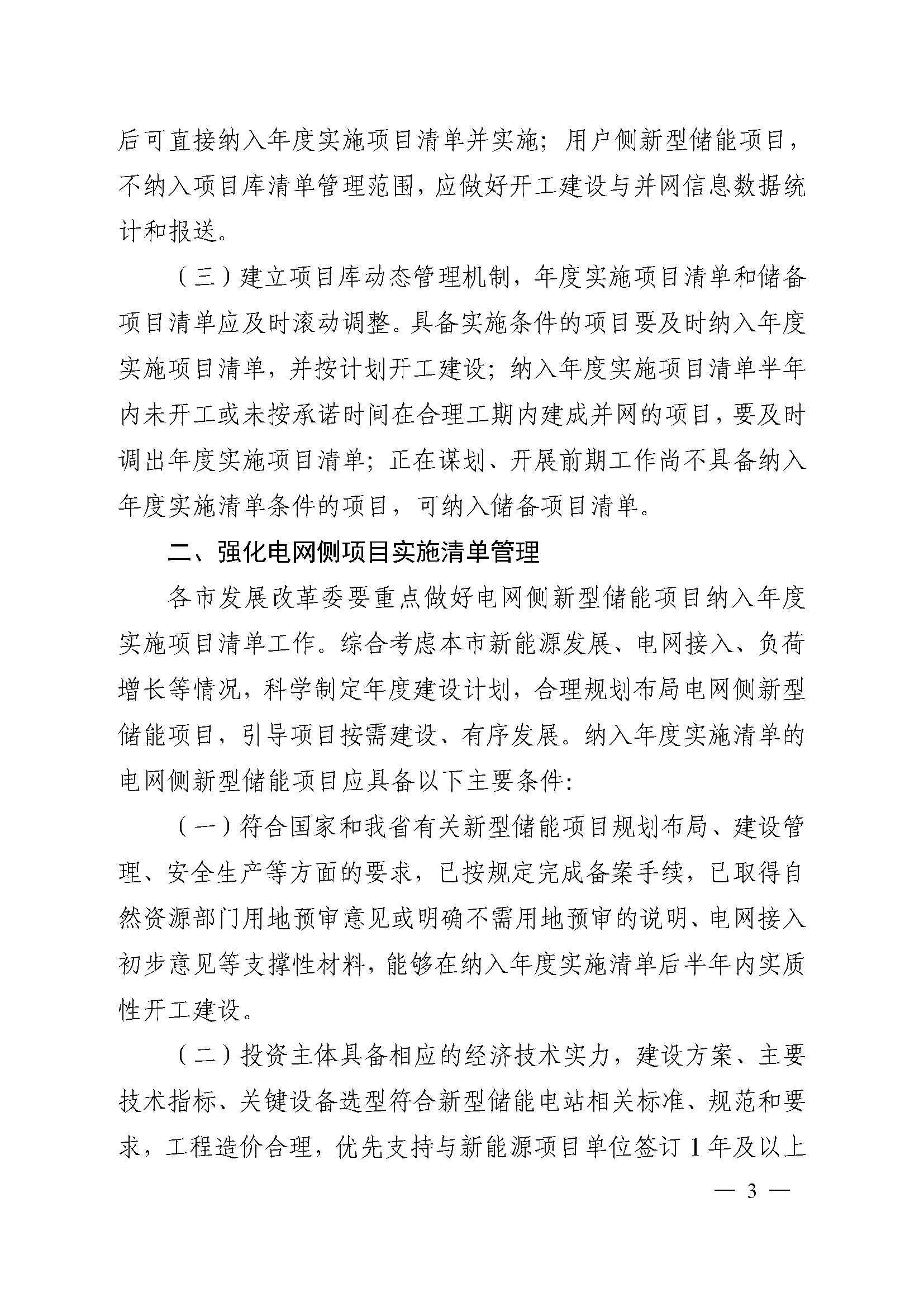 通知要求各市发展改革委要抓紧研究制定本市2026年度新型储能建设计划,编制年度实施项目清单和储备项目清单。对于已纳入全省2025年度实施项目清单的项目,已开工的可结转至本市2026年度实施项目清单;未开工的需重新组织评估,符合条件的结转至本市2026年度实施项目清单。