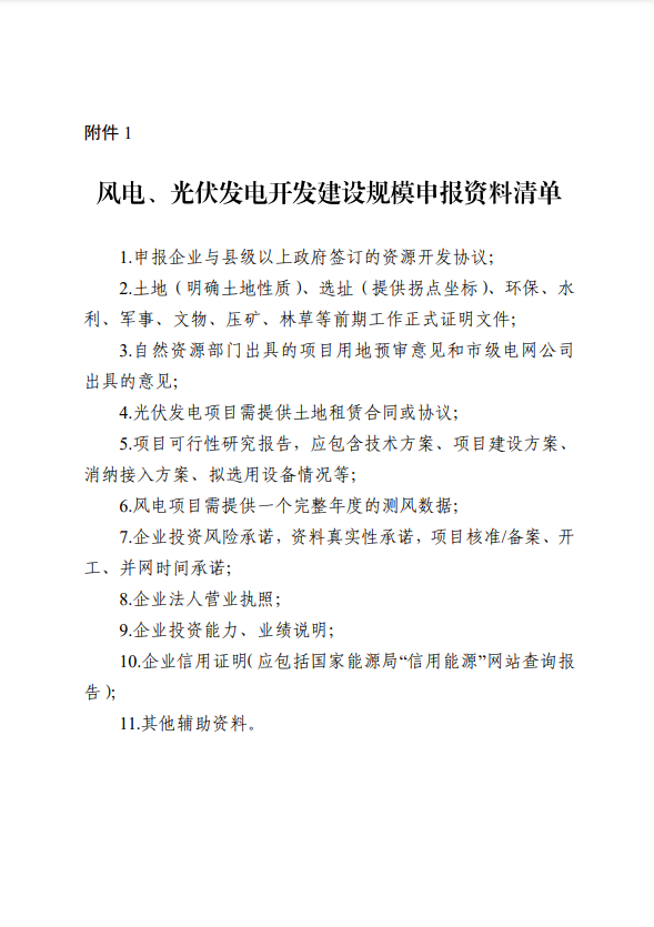 1.风电、光伏发电开发建设规模申报资料清单