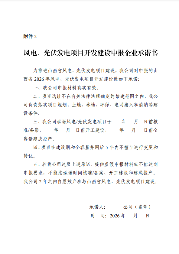 2.风电、光伏发电项目开发建设申报企业承诺书
