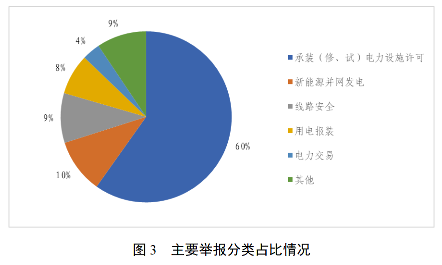 2026年3月,热线平台接收举报问题线索117件。其中,承装(修、试)电力设施许可70件、新能源并网发电12件、线路安全11件、用电报装9件、电力交易4件、其他11件(详见图3)。举报数量较多的省份为:广东16件、河北11件、安徽9件、陕西7件、浙江7件。