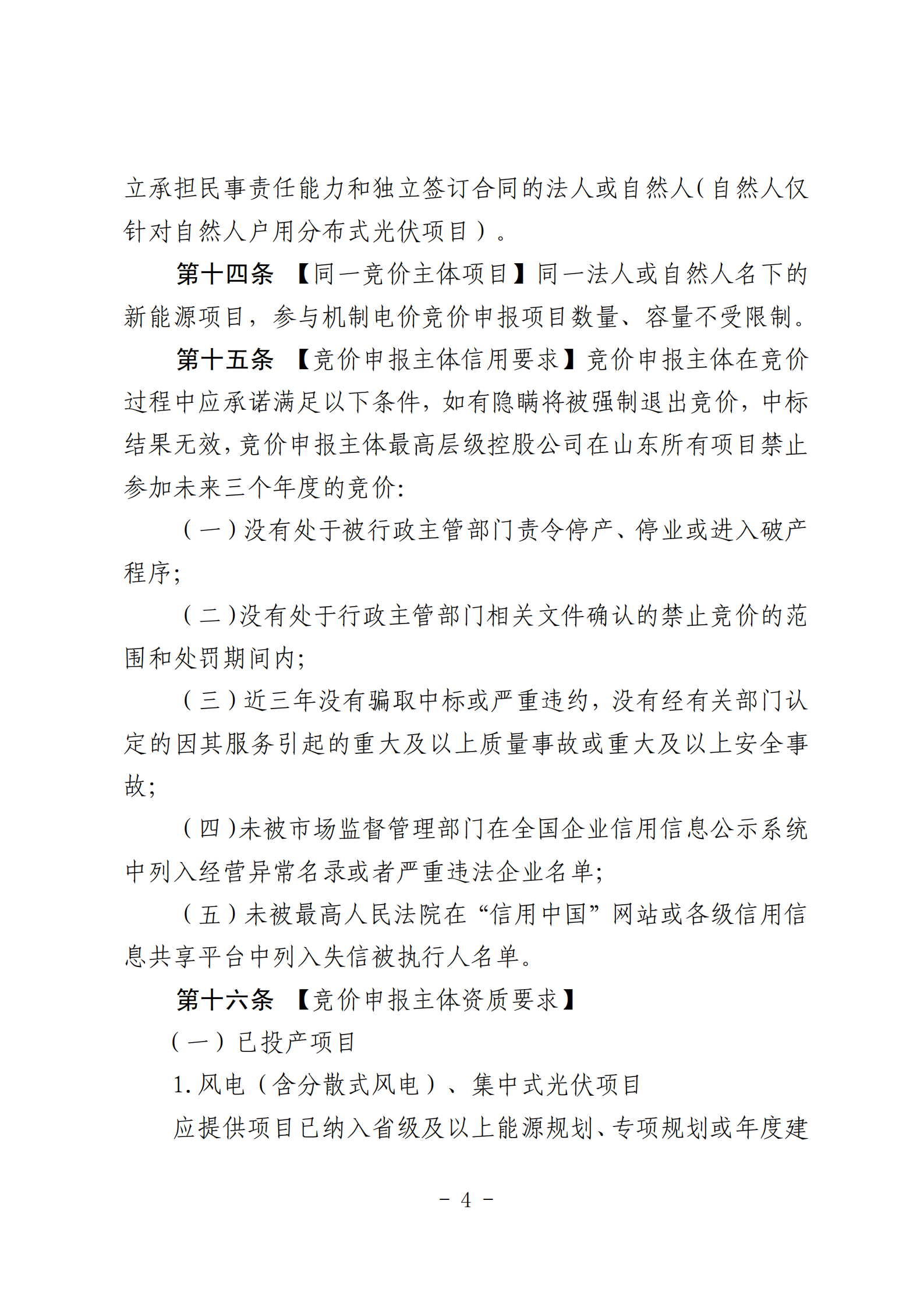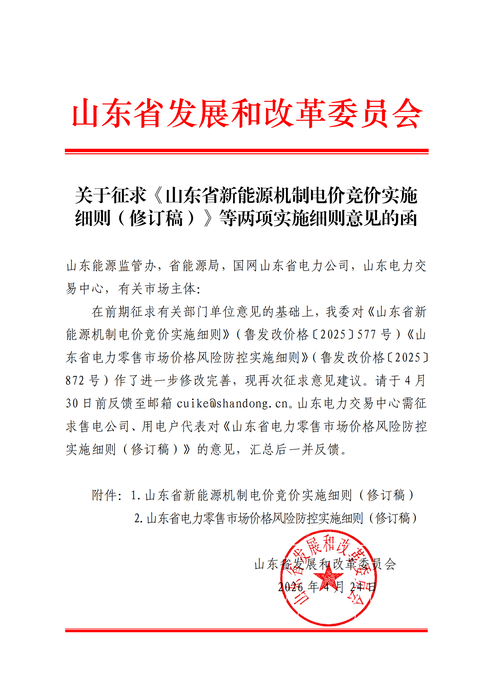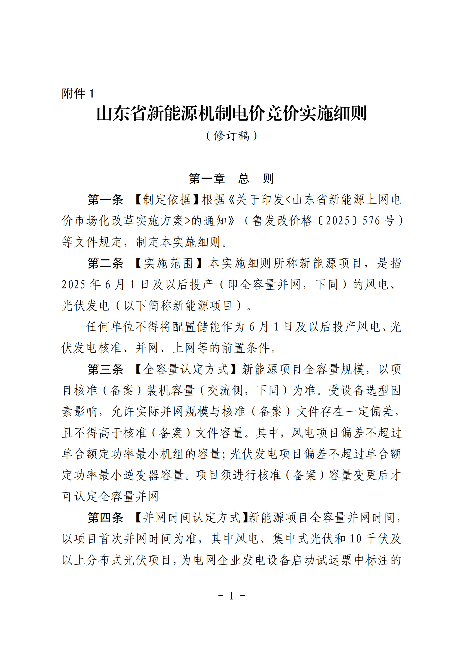 山东省新能源机制电价竞价实施细则(修订稿)征求意见