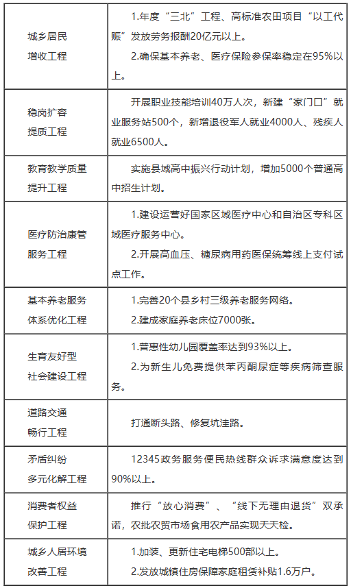 加强普惠性、基础性、兜底性民生建设,实施好“十大民生工程”。